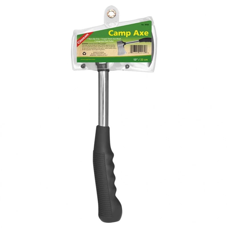 Die Camp Axe hat einen geschmiedeten Stahlkopf und einen Stahlstiel mit rutschfestem Griff. Die praktische Kerbe im Axtkopf ermöglicht das schnelle Entfernen von Nägeln.