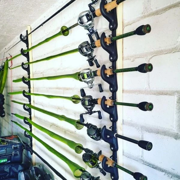 This rod rack will hold two fishing rods on the shed or garage walls, under the cabin roof, inside the gunnel or any other place you can screw into.The hooks can be installed standalone, or joined together, if needed you can add a 4mm bungee cord (not supplied) as a retention band.Features:Soft flexible inserts protect handle and tip, & allow fast & easy stow/removalRack holds rod handle size from 25mm – 38mm (1 – 1.5in) diameterStackable for multiple rodsVertical or horizontal surfacesMade from UV Stabilised, fibreglass reinforced engineering polymers & stainless screwsFits all rod lengths